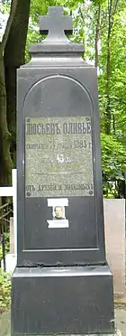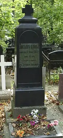 Помер у Ялті 14 листопада 1883 року у віці 45 років від пороку серця. Тіло було переправлено в Москву і віддане землі на Введенському кладовищі[14]. У 2008 році могила Олів'є була виявлена і відновлена (12 ділянка.)[15].