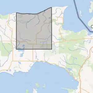1912 кв. миль (4952 км²) 899 кв. миль (2328 км²) 1013 кв. миль (2624 км²), 52.98 % |