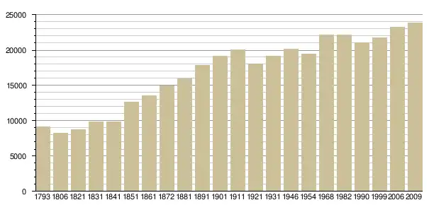 Динаміка населення (base Cassini de l'EHESS pour les nombres retenus jusque 1962[3], base Insee à partir de 1968 (population sans doubles comptes puis population municipale à partir de 2006)[4] · [5] ):
