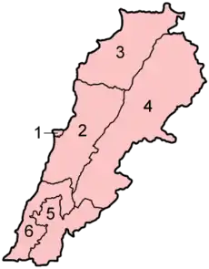 | 4 | Бекаа | البقاع | 4429 | Захла |