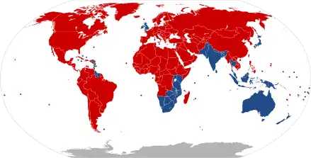 Дехто також розширює поняття на залізничний і трамвайний транспорт. Правило правостороннього руху зараз діє в більшості країн світу: в усій континентальній Європі, майже в цілій континентальній Азії (крім Індії, Пакистану і Бангладеш), а також в обох Америках (крім Гаяни i Суринаму).