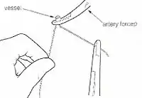 Схематична демонстрація перев'язування судин за допомогою лігатури