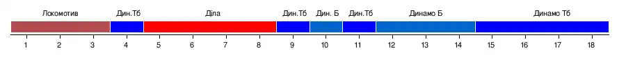 | 3 | Діла | 18 | 8 | 6 | 4 | 29 | 17 | +12 | 30 | |