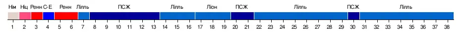 | 1 | Лілль | 38 | 24 | 11 | 3 | 64 | 23 | +41 | 83 | Ліга чемпіонів груповий раунд |
