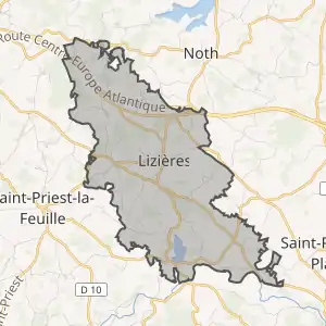 - Розташування муніципалітету Лізьєр на мапі Франції та сусідні муніципалітети