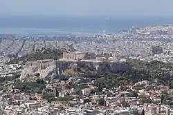 З вершини пагорба відкривається мальовничий вид на Пірей та Саронічну затоку, Афінський акрополь та стадіон Панатінаїкос.