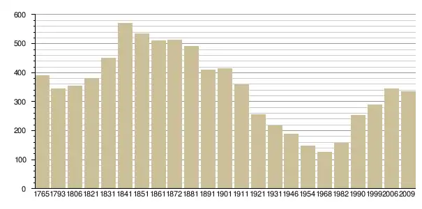 Динаміка населення (Baratier, Duby & Hildesheimer pour l’Ancien Régime ; Institut national de la statistique et des études économiques (Insee), École des hautes études en sciences sociales (EHESS) pour les chiffres issus des recensements légaux):