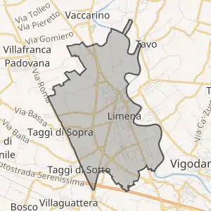 Лімена розташована на відстані[1] близько 400 км на північ від Рима, 38 км на захід від Венеції, 8 км на північ від Падуї.