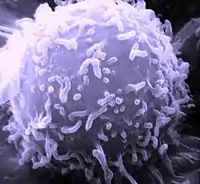 Фото одного лімфоцита людини, скануючий електронний мікроскоп