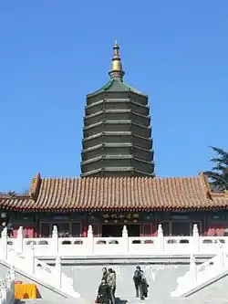 На схід від ставка знаходиться основа старої пагоди, що була зруйнована в 1900 році. Вона називалася Чжаосяньта (招仙塔), що приблизно можна перекласти як «Пагода закликання святих». Основа пагоди була восьмикутною, вона нараховувала 13 поверхів. Її оточували 16 ніш з лампадами. На кожній цеглині пагоди було вирізано зображення Будди, тому її також називали «Пагодою тисячі будд» (千佛塔 Цянь фо та).