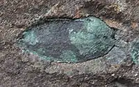 Лінза мідної руди з давнього рудника «Картамиш», що на Донбасі.