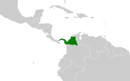 Вид поширений на півночі Колумбії та в Панамі. Мешкає на нижчих ярусах вологих низинних лісів.