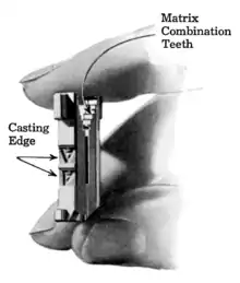 Матриці виглядали як фігурні брусочки, на передніх бічних гранях яких були відштамповані одне або два шрифтових вічка, а на задніх — контрольне вічко, по якому лінотипіст міг читати складаний текст.