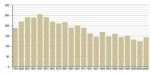 Динаміка населення (base Cassini de l'EHESS pour les nombres retenus jusque 1962[3], base Insee à partir de 1968 (population sans doubles comptes puis population municipale à partir de 2006)[4] · [5] ):