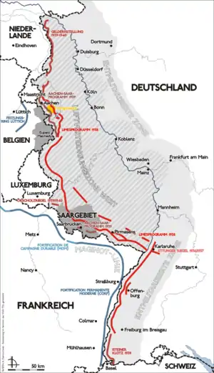 Лінія Зігфрида — лінія захисних споруд (дзотів, протитанкових споруд), що простягалася більш ніж на 630 км з більш ніж 18,000 бункерів, тунелів та танкових пасток. Вона простягалася з Клеве аж до Нідерландів, проходячи по західному кордону старої Німецької Імперії до кордону зі Швейцарією. Адольф Гітлер планував побудувати лінію у 1936 році, однак закінчили її тільки у 1940.