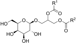 Гліцерогліколіпіди (глікозилгліцероли) — це похідні диацилгліцеролів, у яких, до третього атома карбону гліцеролу приєднаний глікозильним зв'язком моно- або олігосахарид. Найпоширенішими із цього класу сполук є галактоліпіди, що містять один або два залишки галактози. Вони становлять від 70 % до 80 % всіх ліпідів мембран тилакоїдів, через що є найбільш розповсюдженими мембранними ліпідами біосфери. Припускається, що рослини «замінили» фосфоліпіди гліколіпідами через те, що вміст фосфатів у ґрунті часто є лімітуючим чинником, а така заміна дозволяє скоротити потребу в ньому.[2]
