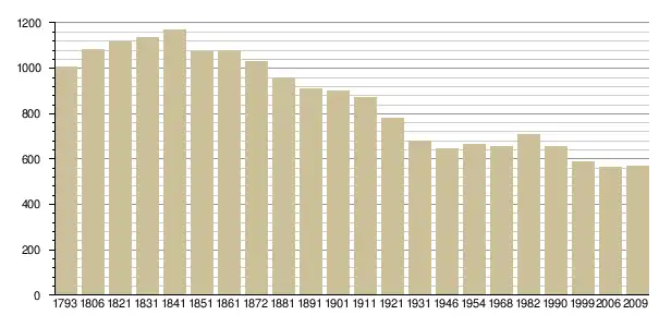 Динаміка населення (base Cassini de l'EHESS pour les nombres retenus jusque 1962[3], base Insee à partir de 1968 (population sans doubles comptes puis population municipale à partir de 2006)[4] · [5] ):