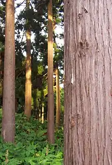 Лісові масиви в країні цілеспрямовано відновлювалися, багато в чому за рахунок урядових субсидій. Уряд, виділяючи на лісопосадки кошти, вимагав заміни так званих комерційно непридатних природних лісів на продуктивніші. В результаті дуб, клен й багато інших широколистих дерев замінювалися вигідною з погляду економіки криптомерією, високі ділові якості деревини якої поєднуються з швидким зростом. Площі лісів були збережені, але в результаті подібного підходу це вже далеко не ті ліси, які були 5—6 десятиліть тому. Зараз 41 % лісів в Японії є штучними посадками, але 44 % з них, приблизно 5 млн. га, — це масиви криптомерії[4].
