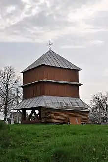 На північ від храму стоїть триярусна дзвіниця розміром 4,2×4,2 м. Навколо церкви багато вільного простору, що дає можливість безперешкодно оглядати її з будь-якої відстані.[5]
