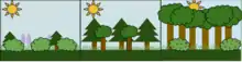 У насадженні виділяють такі яруси: деревостан, підріст, підлісок, живе надґрунтове вкриття, які разом із позаярусною рослинністю складають наземну частину лісу. Коріння цих рослин, численні мікро- та макроорганізми, ґрунт, материнська гірська порода утворюють підземну частину лісу. Не кожне насадження має усі перелічені вище яруси.