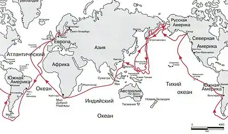Плавання тривало з 26 серпня 1817 по 5 вересня 1819. Шлюп «Камчатка» перетнув Атлантику, обігнув мис Горн, далі через весь Тихий океан добрався до Камчатки, побував у всіх російських володіннях Північної Америки, на Гавайських, Маріанських і Молуккських островах, перетнув Індійський океан і, обігнувши мис Доброї Надії, повернувся в Кронштадт.