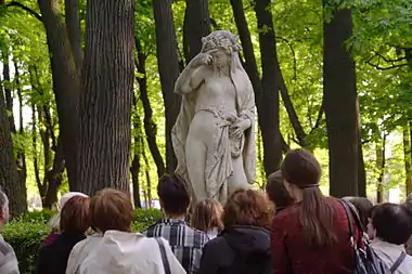 - Мармурова скульптура доби бароко перенесена в сховища Російського музею, що опікується теперішнім Літнім садом. Відвідувачі можуть побачити їх в Залі антиків Михайлівського замка, ще однієї філії музею. Там стоять відреставровані оригінали 18 століття. На їх місцях в саду — копії, виготовлені за новим рецептом суміші (портландцемент).