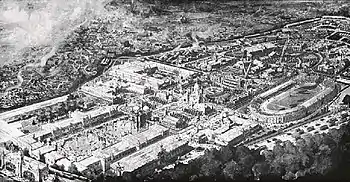 Початково виставка мала пройти в 1907 році, але задля кращого проведення Олімпіади було досягнуто домовленості про перенесення початку виставки на 1908 рік[10]. Це було перше важливе досягнення для організаторів ігор. Основну олімпійську споруду — новий стадіон — планувалося будувати безпосередньо на території виставки. Широко розрекламована виставка приваблювала би багато відвідувачів, що у свою чергу підвищувало би відвідуваність Олімпіади[11].