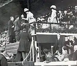 Роботу над стадіоном офіційно закінчили 14 травня 1908 року. На церемонії були присутні принц та принцеса Уельські, які присвятили стадіон міжнародному спорту[18]. Оскільки стадіон був розташований на території виставки, де більшість споруд були білого кольору, то він був названий «білим» стадіоном — «Вайт Сіті Стедіум» (англ. White City Stadium)[13].