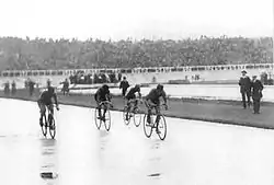 Довкола бігової доріжки, безпосередньо перед глядацькими сидіннями, побудували велосипедний трек довжиною 660 ярдів (603,5 метрів)[13] та нахилом 10 футів (3,04 метри)[14].