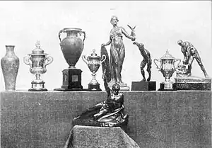 Спеціальні нагороди | До спеціальних нагород належали кубки. Чемпіон Олімпіади, відповідно до регламенту, зберігав кубок у себе до наступних ігор[63]. Загалом було 12 кубків[64]:
