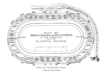 Було передбачено створення 63 тисяч сидячих місць[комент. 1] та місце для розгортання ще 30 тисяч стоячих[комент. 2]. Були побудовані спеціальні ложі для королівської сім'ї, членів Британської олімпійської ради, членів МОКу та членів Comité d’Honneur. Журналісти та судді також мали спеціально відведені місця[13].