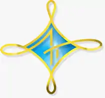 Логотип Ліцею № 100 «Поділ» являє собою стилізований ромб синього кольору з увігнутими в середину сторонами, оточений широкою золотою смужкою. В центрі ромба переплетені у вигляді вензеля дві золоті букви—"Л" та «П»—ліцей «Поділ». Робочий варіант логотипу—стилізований ромб та вензель на прозорому фоні.