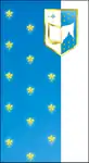 Прапор Ліцею № 100 «Поділ» являє собою прямокутне полотнище з відношенням сторін 1:2. По вертикалі він розділений на два кольорових поля у відношенні 2:1. Ліве поле синього кольору, по якому розкидані золоті каштанові листочки, які є давнім і відомим символом міста Києва і вказують на приналежність ліцею до освітніх закладів міста. Праве поле—біле. На стику двох полів на невеликій відстані від верхнього краю (1:8 по відношенню до ширини) розташовано герб. Кольорова гамма—білий, синій, блакитний, золотий.