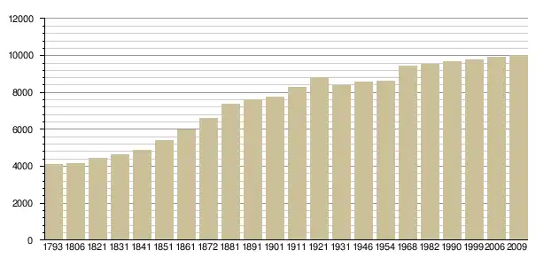Динаміка населення (base Cassini de l'EHESS pour les nombres retenus jusque 1962[3], base Insee à partir de 1968 (population sans doubles comptes puis population municipale à partir de 2006)[4] · [5] ):