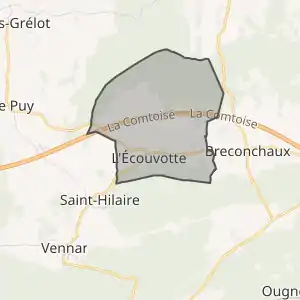 - Розташування муніципалітету Л'Екувотт на мапі Франції та сусідні муніципалітети