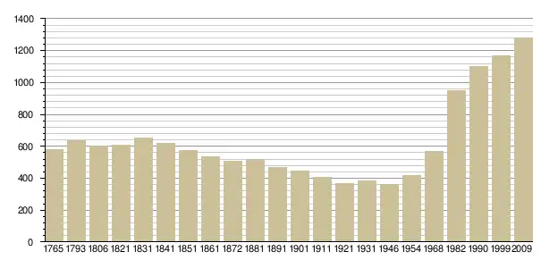 Динаміка населення (Baratier, Duby & Hildesheimer pour l’Ancien Régime ; Insee[3], EHESS[4] pour les chiffres issus des recensements légaux ):