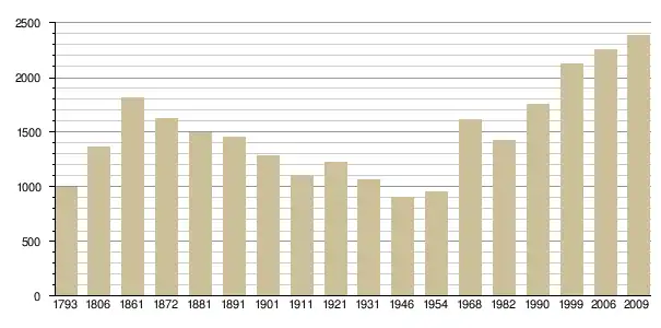 Динаміка населення (Ehess[3] і INSEE[4] ):