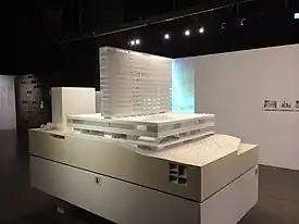 «Будівля М +: Колекція музею та архітектури» була демонстрацією зростаючої колекції архітектури музею, яка проводилася з 10 січня по 9 лютого 2014 року в галереї ArtisTree в Тайку Шінгу. На момент виставки архітектурна колекція налічувала близько 1000 предметів, з яких було виставлено понад 120. Захід також продемонстрував майбутній дизайн будівлі музею, а також інші п’ять робіт, що потрапили до шорт-листа з архітектурного конкурсу. [17]