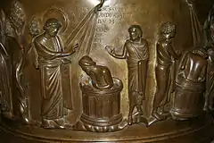 - Купіль у церкві Святого Варфоломія, Льєж (початок 12 століття) роботи Реньє де Юї
