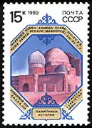 Марка СССР. Пам'ятки історії. Туркестан. Мавзолей Ходжа Ахмеда Ясаві, 1989 рік