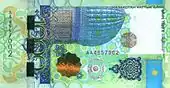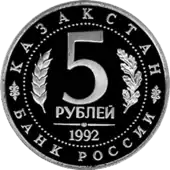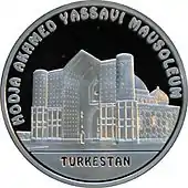 Мавзолей Ходжі Ахмеда Ясаві на пам'ятній банкноті 1000 теньге 2001 року (реверс).