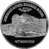 Монета Банка Росії випущена в пам'ять про мавзолей Ходжі Ахмеда Ясаві в Туркестані (аверс)