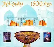 Тай казан на пам'ятній поштовій марці Казахстану, присвяченій 1500-літтю Туркестана