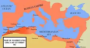 Після поразки Карфагена від Римської імперії, Мавретанія потрапила в залежність від Риму. Римляни посадили на трон Юбу II Нумідійського. Його син, Птолемій, успадкував трон. Калігула вбив його у 40. Клавдій приєднав Мавретанію вже як Римську провінцію у 44 році. В наступному він розділив Мавретанію на Кесарейську та Тингитанську уздовж річки Мулуя, приблизно 60 км на захід від сучасного Орану.