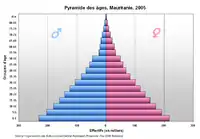 Вікова піраміда населення виглядає наступним чином (станом на 2006 рік):
