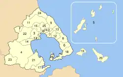 | Муніципалітет | YPES код | Місцева влада (якщо відрізняється) | Поштовий код | Тел. код | № на мапі |