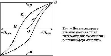 Однією з основних особливостей сильномагнітних мінералів є залежність їхньої магнітної індукції або намагніченості від напруженості поля. При циклічному перемагнічуванні, що відбувається у напрямку вказаному стрілками, крива намагнічення переході у криву гістерезису.
