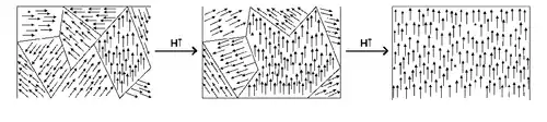 В зовнішньому магнітному полі відбувається як переорієнтація магнітних моментів окремих доменів, так і зміна розмірів цих доменів за рахунок руху доменних стінок. Це призводить до намагнічення зразка, яке зберігається при зменшенні зовнішнього магнітного поля до нуля.