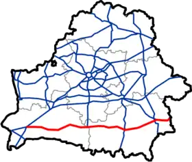 ![]() Магістраль М10 на мапі автодоріг Білорусі | |