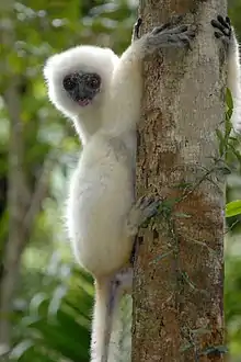 Найбільший з лемурів — індрі. Голос його нагадує плач дитини. Все тіло (завдовжки до 80 см) вкрите хвилястим хутром; лоб, груди, куприк і боки білі, решта все— буре і чорне. Хвіст короткий, недорозвинений, усього два-три сантиметри. Індрі спритний, легко стрибає з гілки на гілку, живиться плодами, але їсть і дрібних птахів. Легко приручається, і малагасійці виховують його для полювання.